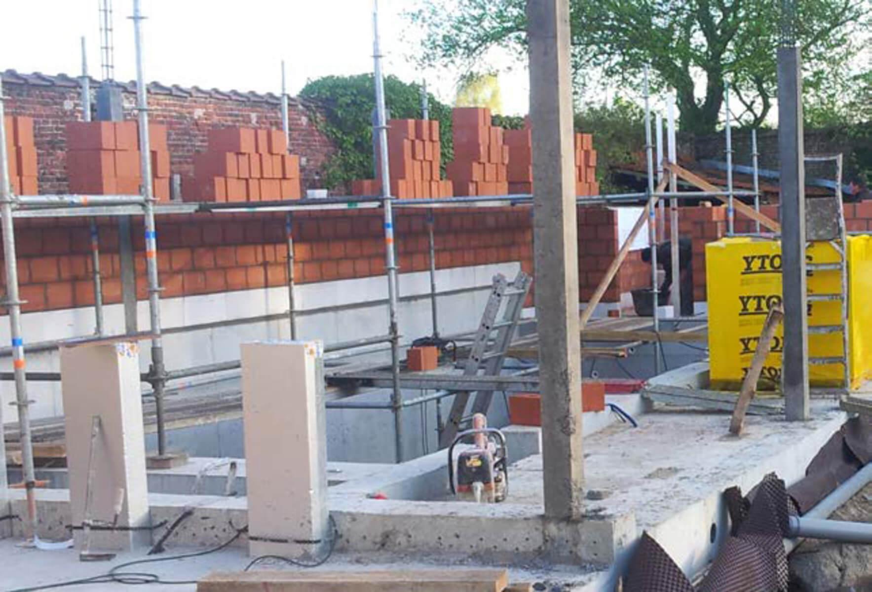 Ons team gaat aan de slag met de voorbereidende grondwerken, de bekisting, wapening en storting. Alles wordt stipt en volgens de afgesproken timing uitgevoerd. We volgen de werf actief op.
